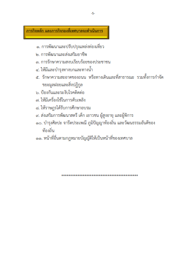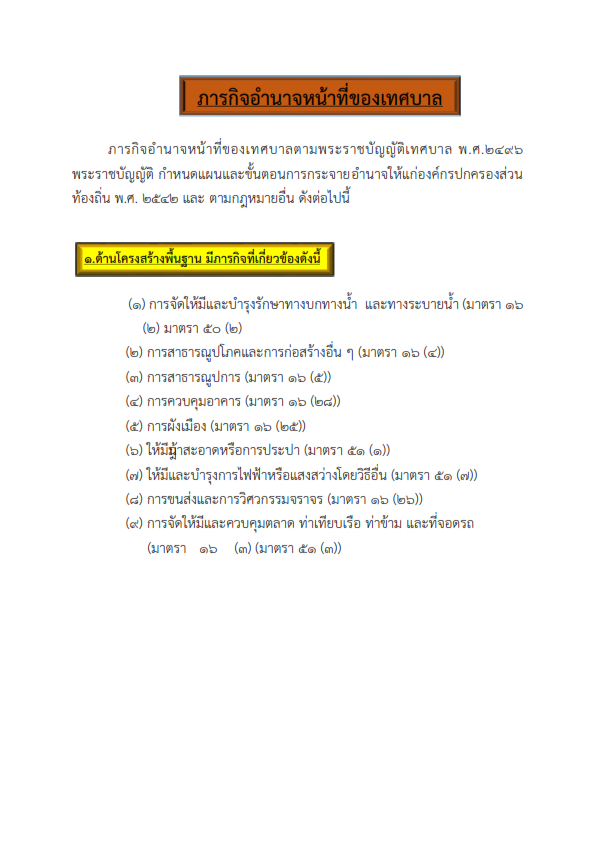 อำนาจหน้าที่ของเทศบาลตำบลห้วยขะยุง